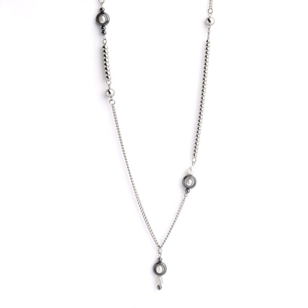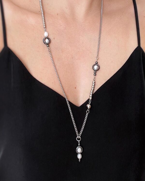Chain with asymmetric elements and ring-shaped pendant — versatile accessory wearable as necklace, bracelet, or choker, adding a modern touch to layered or basic looks.