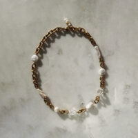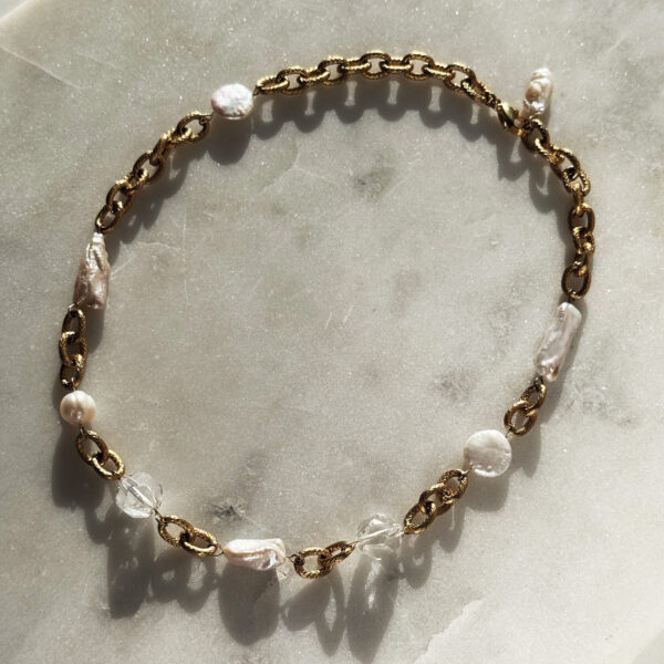 Materials: 18-carat gold-plated, natural pearls, rock crystal