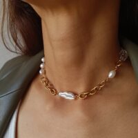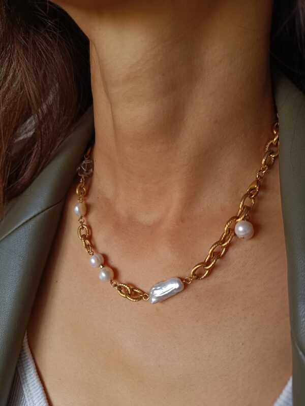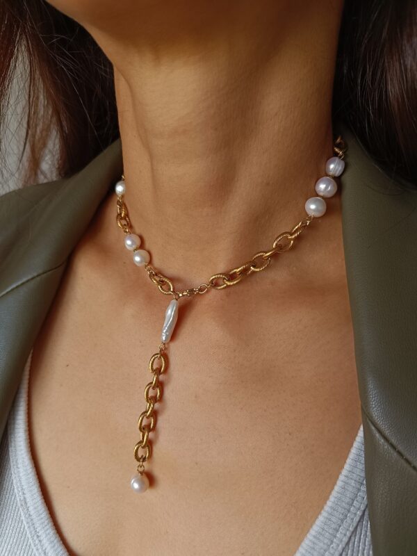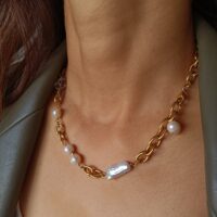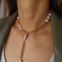 Select options This product has multiple variants. The options may be chosen on the product page“Chameleon” chip with pendant and long extender — a bold mix of pearls, steel, and modular elements for an expressive, daring look.68.85$Rated 0 out of 5 -