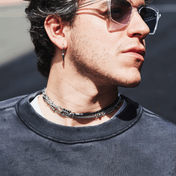 Set of three steel chains with sleek metal details — perfect for those who appreciate minimalist style with a bold edge.