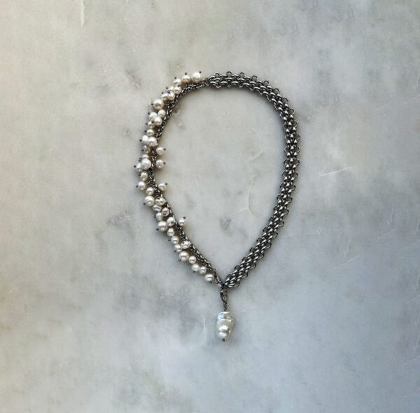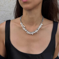 Necklace Silver And White Cluster