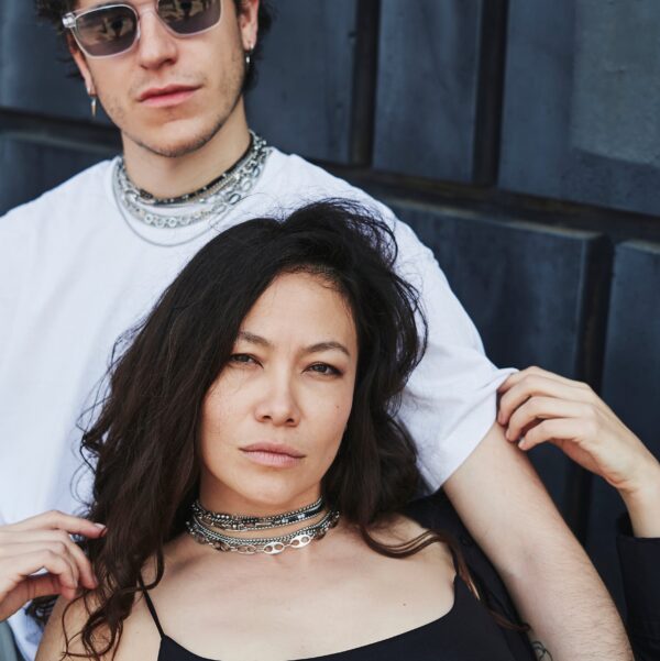 Steel gargantilla with hematite “Chameleon” — a bold piece that blends strength with refined style.
